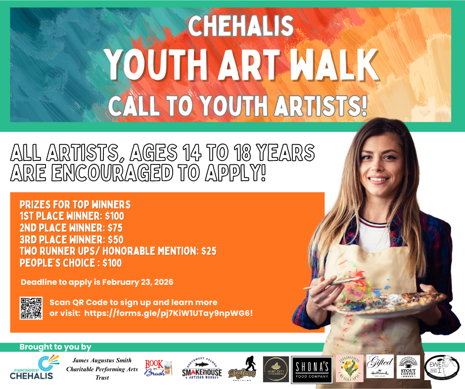 Dandelion Creative Space and Experience Chehalis are delighted to announce an exciting new opportunity for our community and youth artists in Lewis County. From March 14-21, participating downtown Chehalis businesses will host youth art in the first annual Chehalis Youth Art Walk. This new event aims to enhance the cultural experiences in Chehalis by providing local high school artists a valuable opportunity to showcase their work and broaden the community’s range of art events.